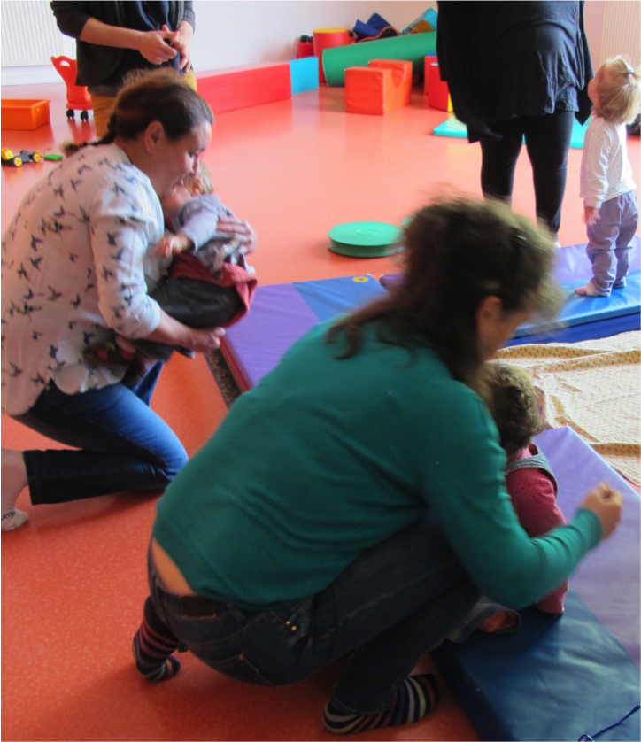 Nous abordons les notions d’installations, de portage, les compétences de chacun à observer et à valoriser l’activité spontanée du tout petit afin de favoriser son appropriation corporelle. Ensemble, et à partir de chaque situation particulière, nous ajustons au mieux notre accompagnement du bébé.
